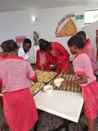 Below: Grade 6 Class of 2022/23, on the left making Cornish pasties, middle, making cupcakes for their Christmas party. On the right the finish product of Cornish pasties